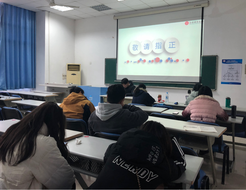 研究生们首先依照论文框架展示论文内容,对论文的选题意义、目的以及研究方法等进行介绍,着重在研究内容与结论。