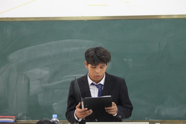 教师代表刘宴豪、2022级老生代表乐美越、2024级新生代表许烨依次上台发言。教师代表刘宴豪的话语中充满了对新生们的殷切期望,他鼓励同学们珍惜宝贵的大学时光,充分利用学院提供的丰富资源,不断提升自己的专业素养和综合能力。他叮嘱新生们要成为新时代的“四有”青年——有理想、有道德、有文化、有纪律,以实现个人价值和社会贡献的双重目标。老生代表乐美越同学分享她作为学生骨干的蝶变之路,亲身话经历,鼓励新生主动融入校园生活,发扬“完全人格,首在体育”院训精神,在第一课堂主阵地保持学习初心,在第二三课堂勤于实践、勇于挑战,为学校、学院事业挺膺担当。新生代表许烨同学满怀激情地发言,他感慨地说,作为新百年的江财人,2024级新生们将接过前辈的接力棒,肩负起赓续江财辉煌的使命。他的话语中充满了对未来的憧憬和对责任的担当,展现了新生们的决心和勇气。